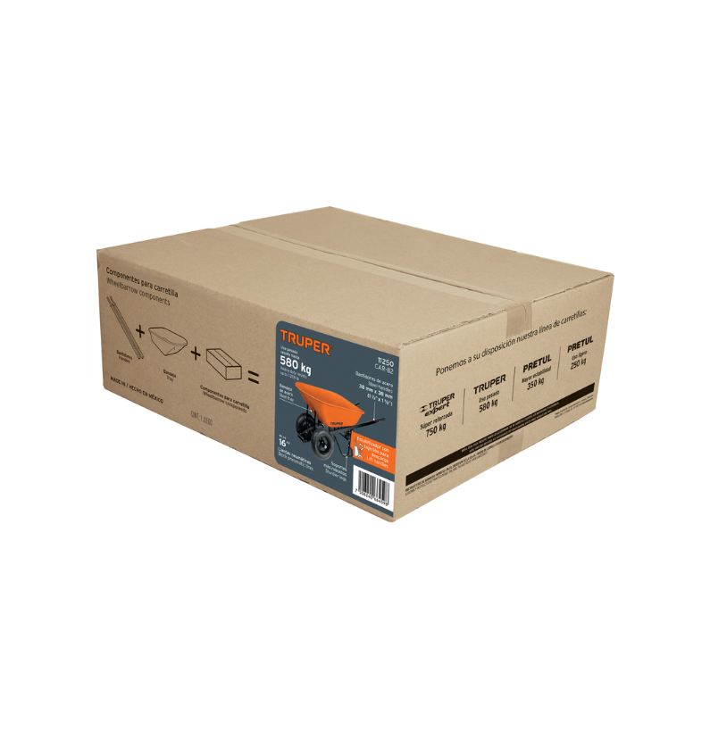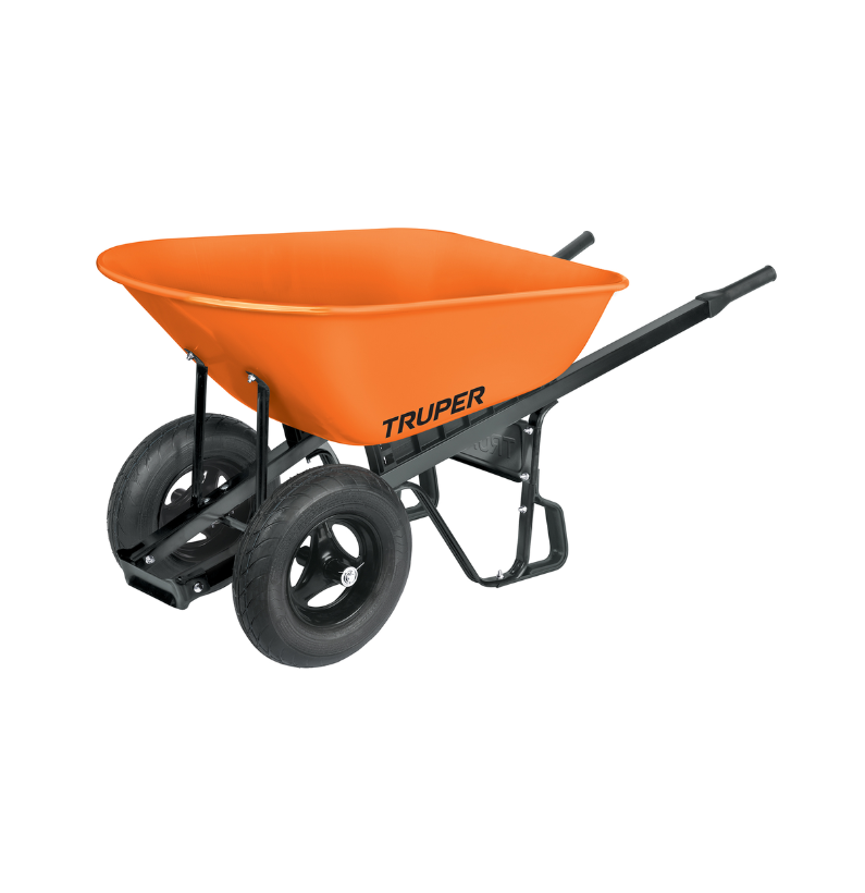 - Las Carretillas Truper CAR-82 cuenta con doble llanta neumática y bastidores de acero reforzado, diseñada para transportar materiales pesados con mayor estabilidad y seguridad. Su concha metálica resistente y estructura robusta la hacen ideal para construcción, obra y trabajos de carga intensiva.