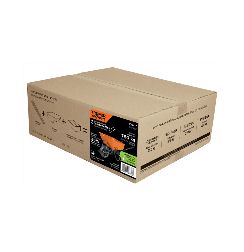 - Las Carretillas 6 ft³ Imponchable Truper Expert CAT-60X está diseñada para uso industrial y de construcción, con concha metálica reforzada, bastidor tubular resistente y llanta imponchable que mejora la estabilidad y el desplazamiento en terrenos irregulares. Ofrece gran capacidad de carga y alta durabilidad para trabajos exigentes.