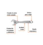 Llave francesa cromada mando de PVC 8″ 15510 Truper